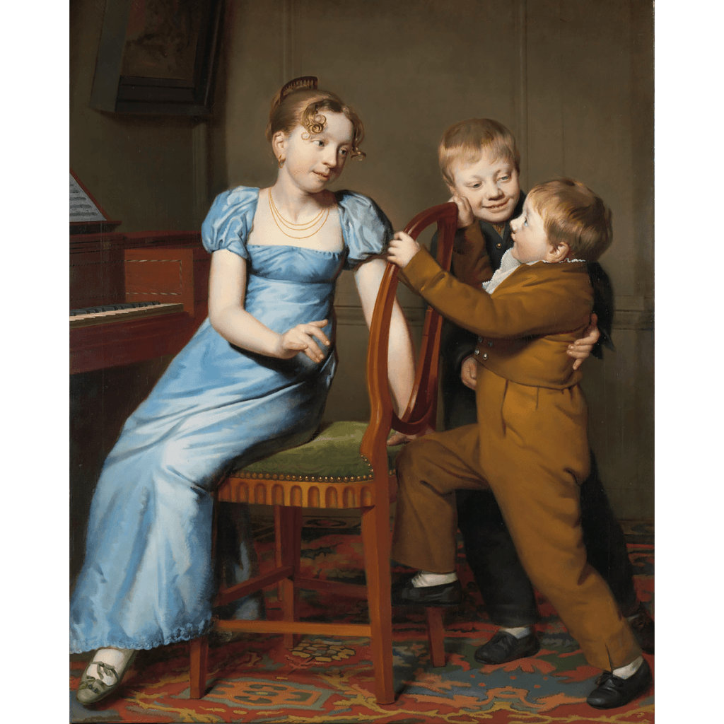 The Frisian painter Willem Bartel van der Kooi was a master at depicting children. The children in this painting are portrayed so playfully and naturally that the work resembles a snapshot. However, appearances are deceiving, for Van der Kooij carefully arranged the children to form a triangular composition. It is not known whether the painting is a portrait or an imaginary scene.