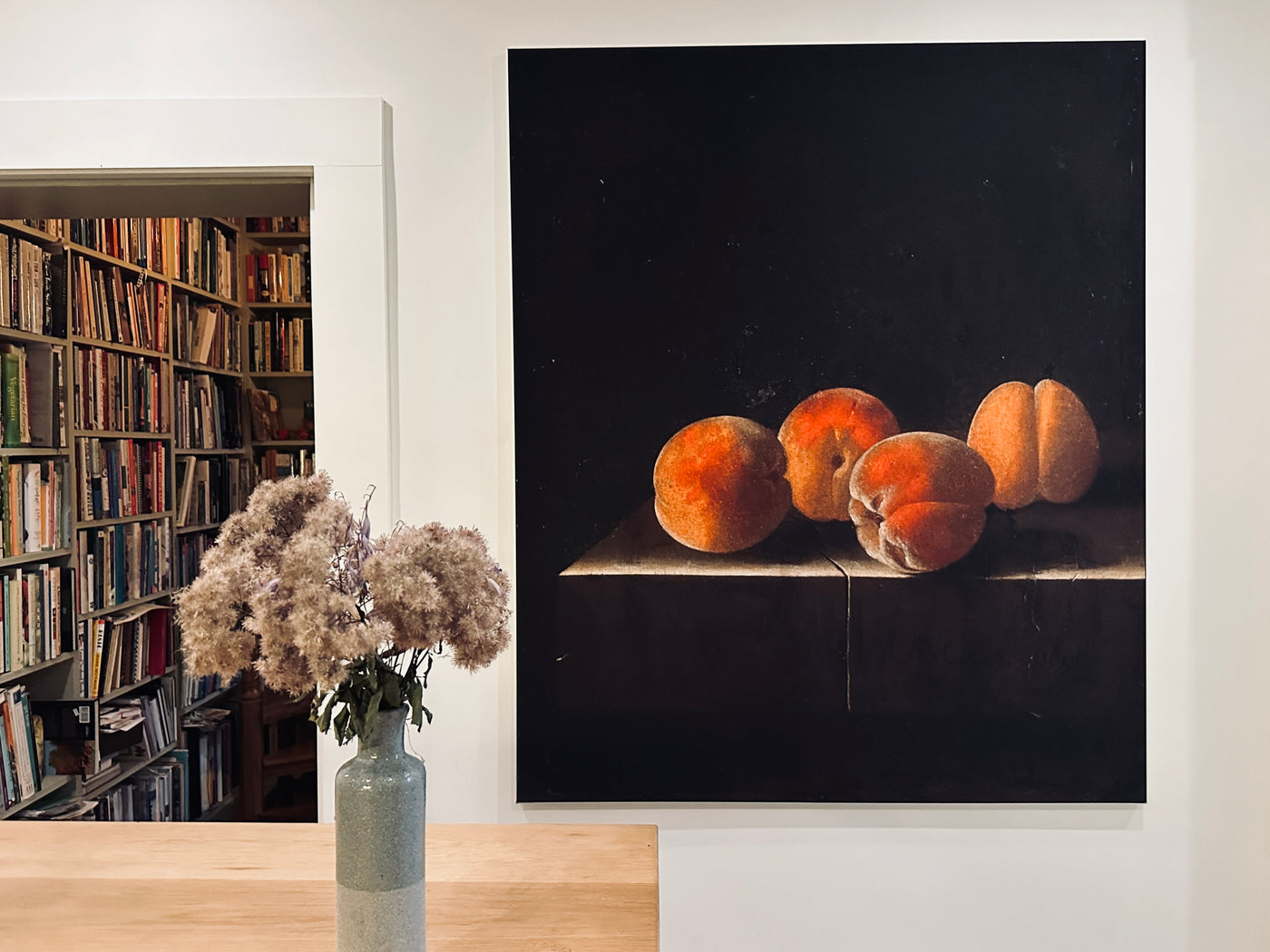 “Four Apricots on a Stone Plinth, a warm and inviting 1698 still life, is not only the focal point of my kitchen, but makes me smile every time I look at it. The matte finish of the fabric on which it is printed produces a depth and vibrancy far beyond what a traditional painting can provide. Even on a dreary day it glows with life. And everyone who sees it immediately wants to take it home with them!”